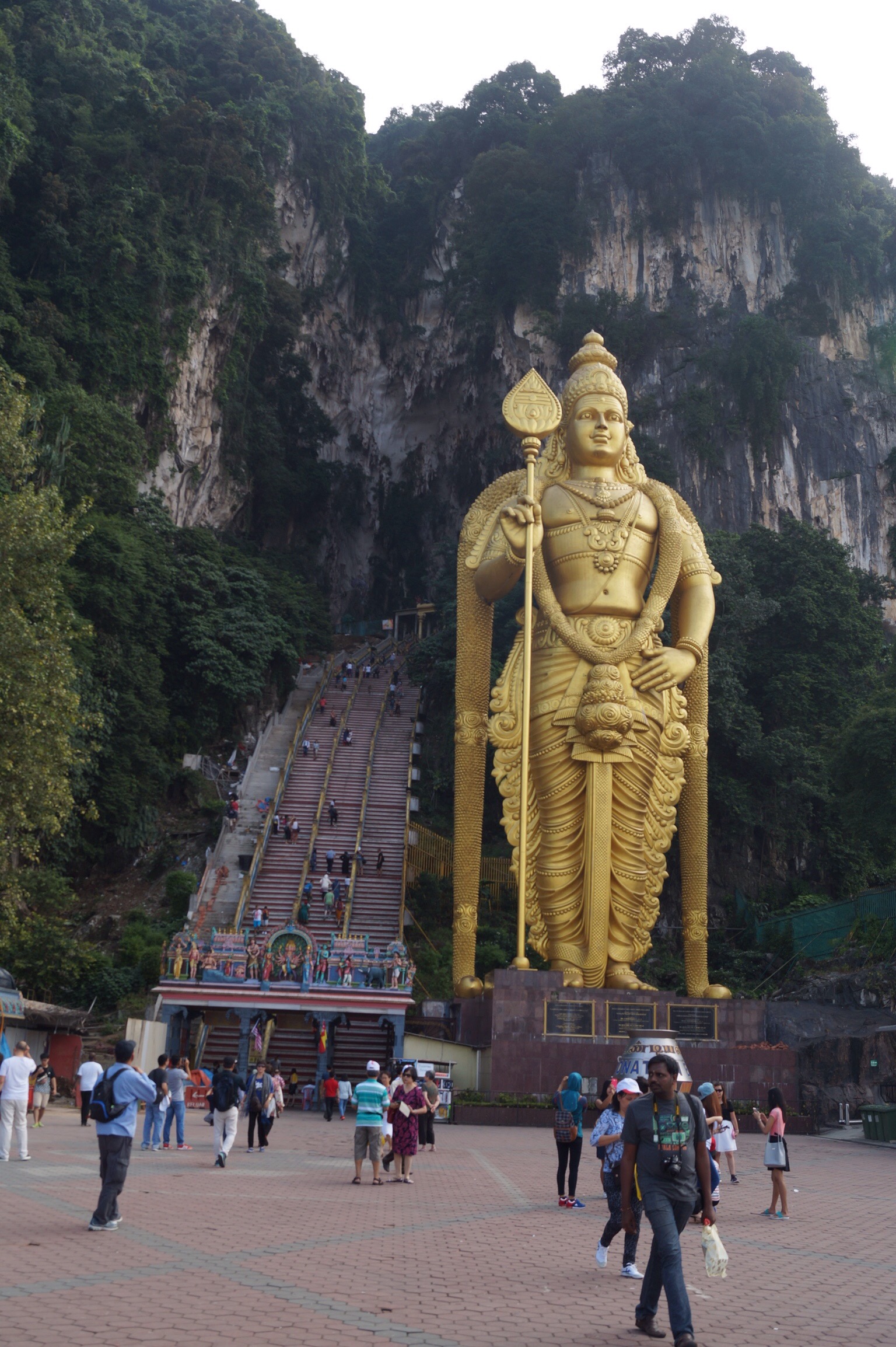 Unfortunately jet lag kicked in and we were all awake at 2.30, so as soon as it was light we decided to head towards Kuala Lumpur. As it was early we decided to visit one of the sites on the way, the Batu Caves. These are caves in a limestone hill just outside Kuala Lumpur in which various Hindu shrines have been built.