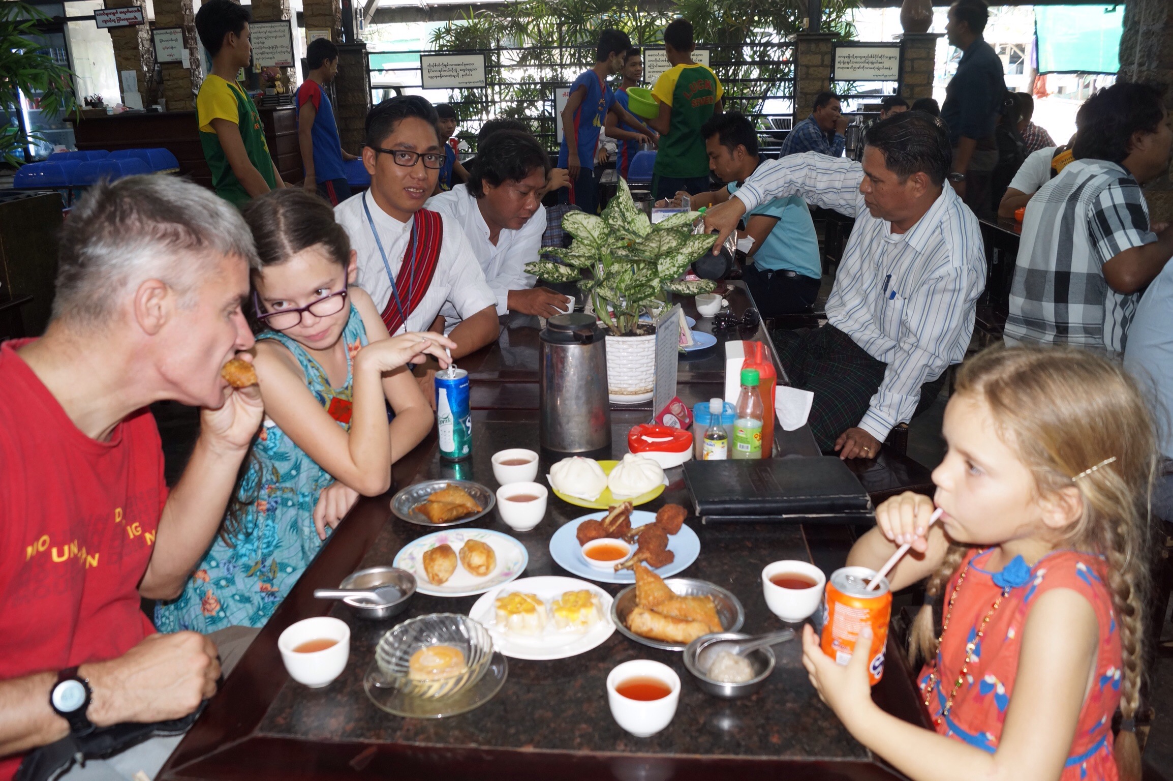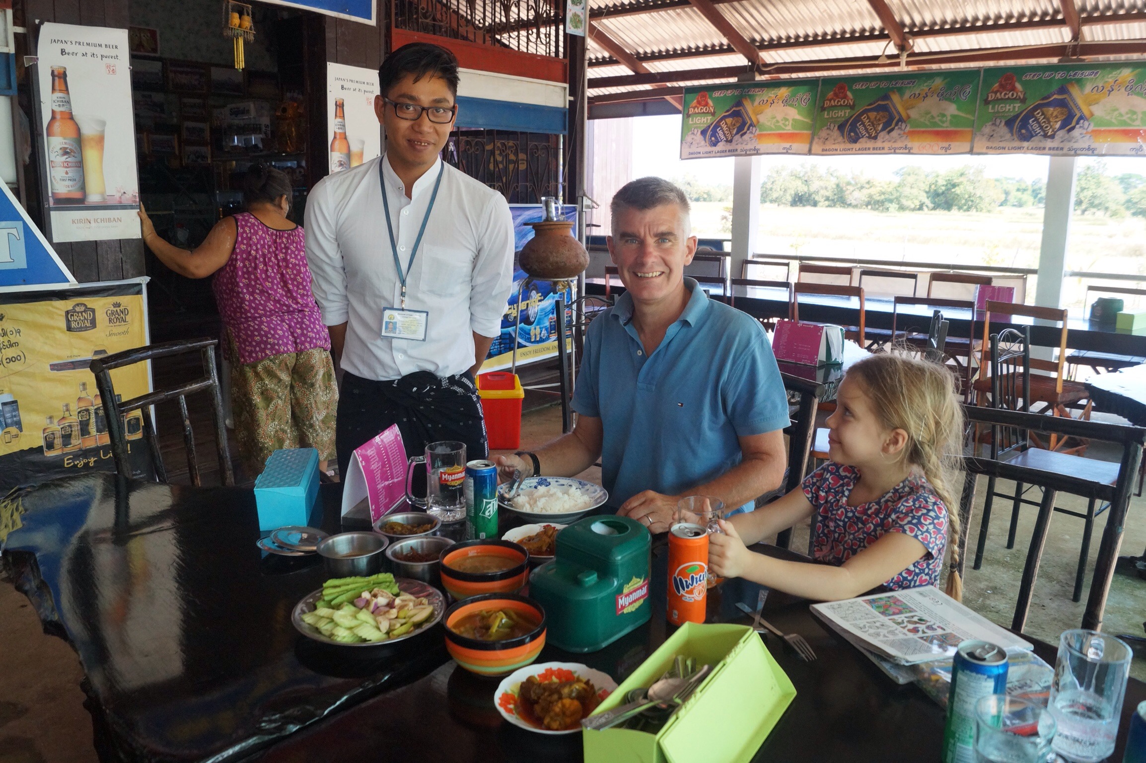 Stopping for lunch at a small roadside restaurant, the staff spoke no English and the menu was only in Burmese. Here Kyaw came to the rescue explaining what was on offer and ordering for us our first delicious Burmese curry.