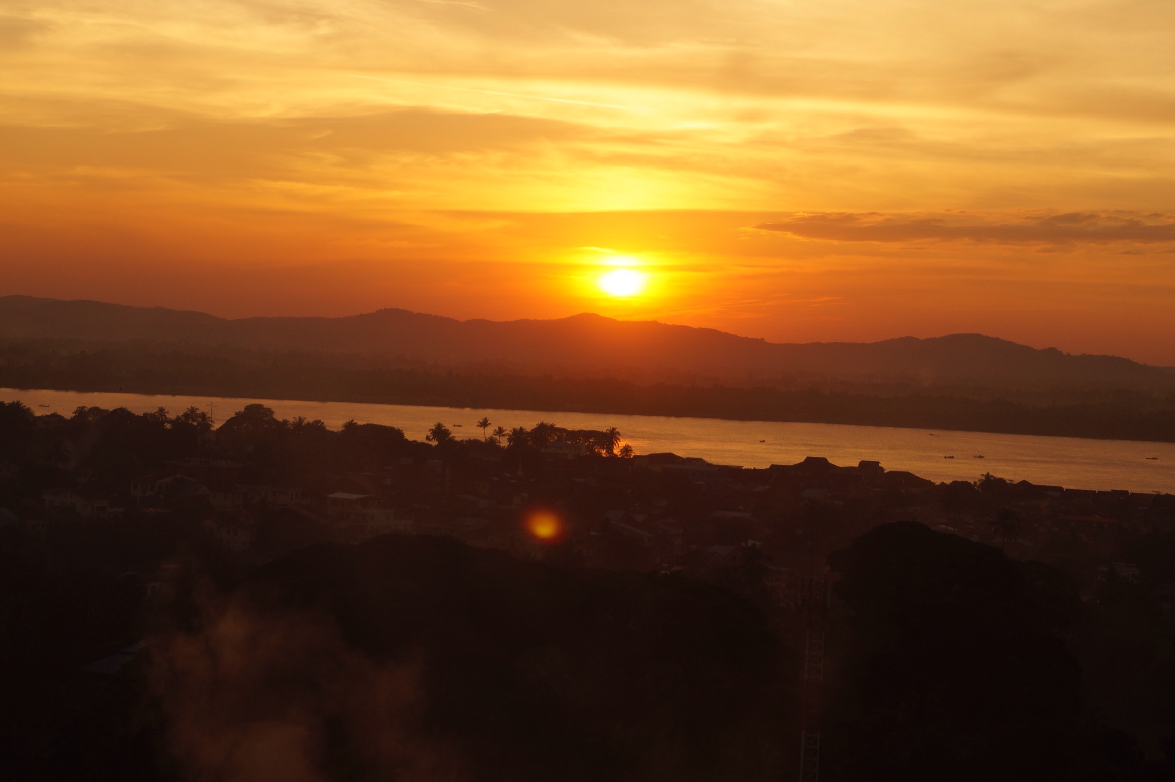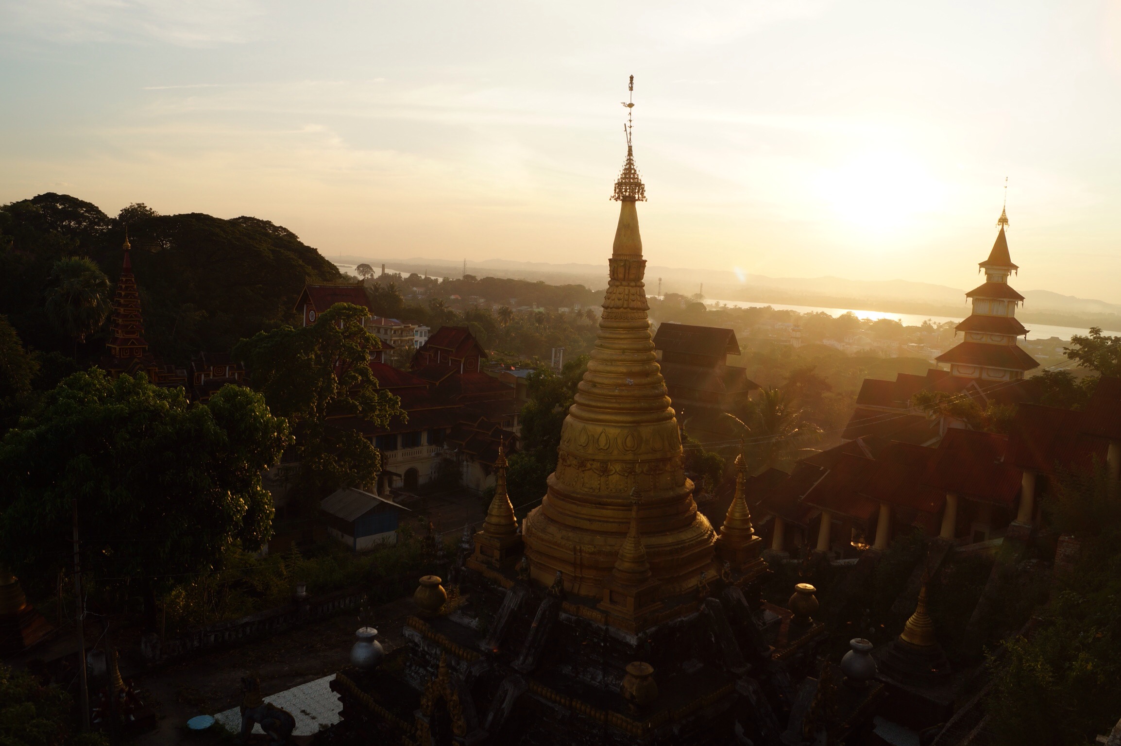 The late afternoon sunlight danced off the bright golden stupa. Beneath us sprawled the town of Mawlamyine (formerly called Moulmein) the first British colonial capital of India. It was no longer the thriving port it once was but there were still ships in the delta bringing goods to the port. As we watched the sunset over the mountain tops our thoughts turned to Kipling.